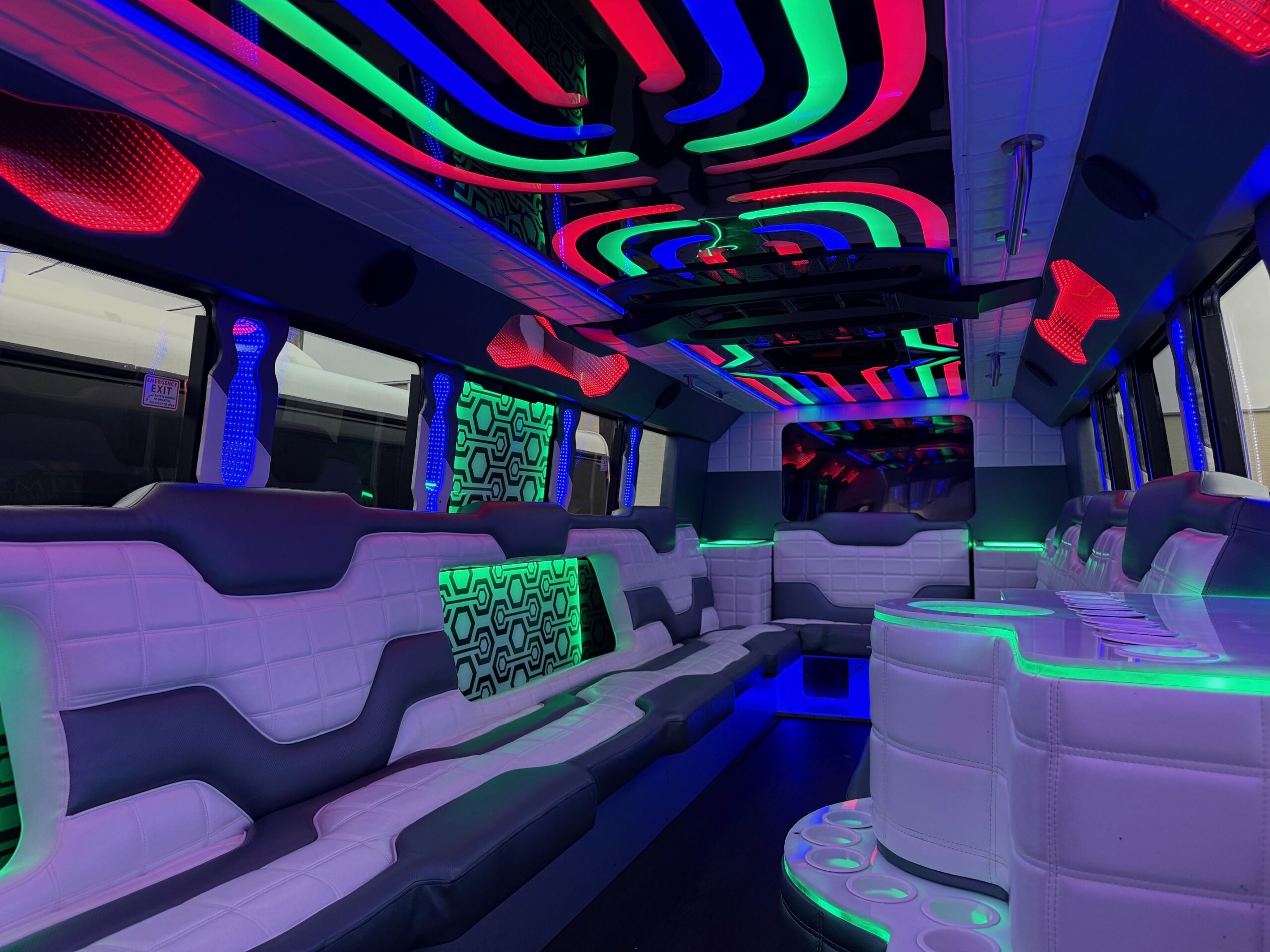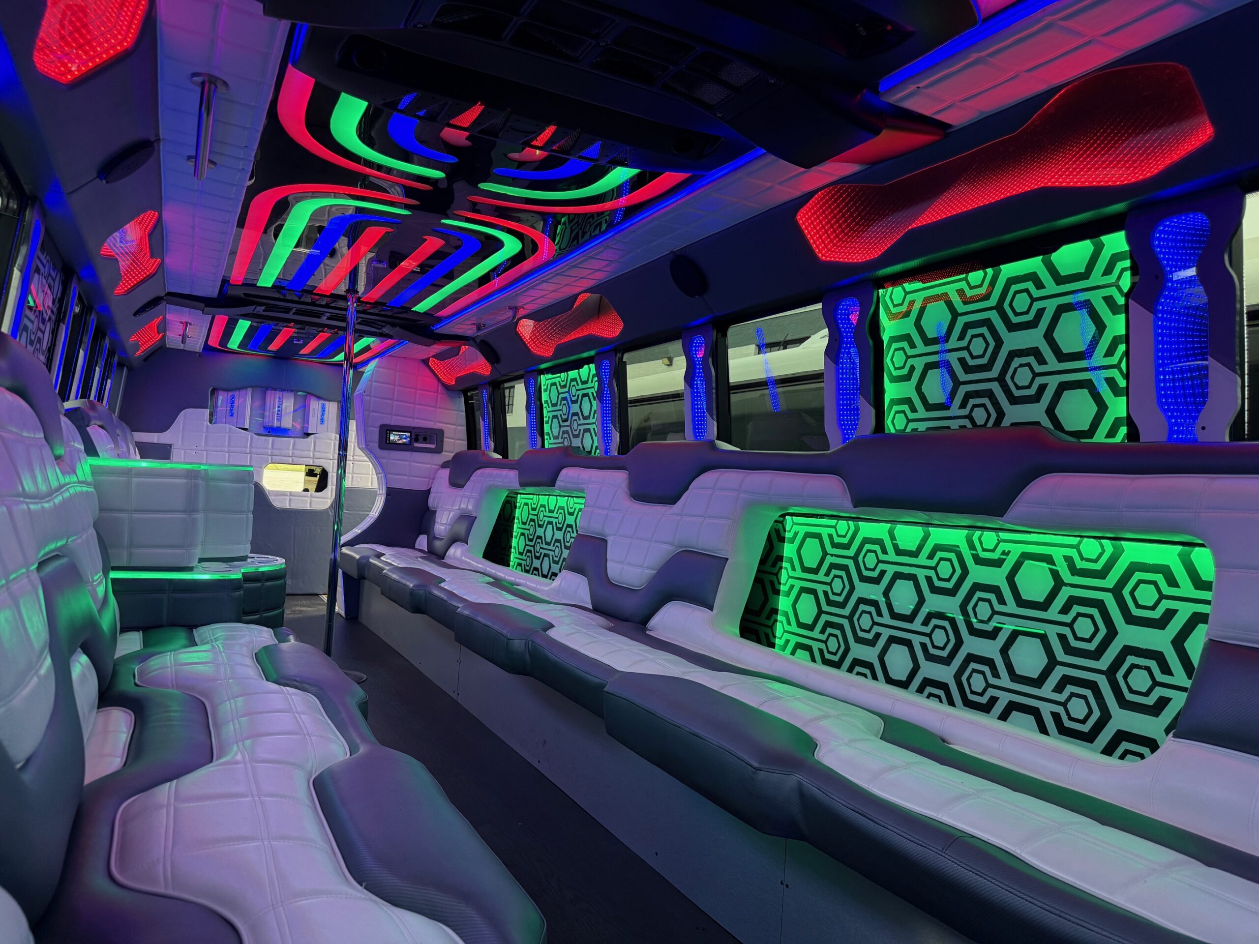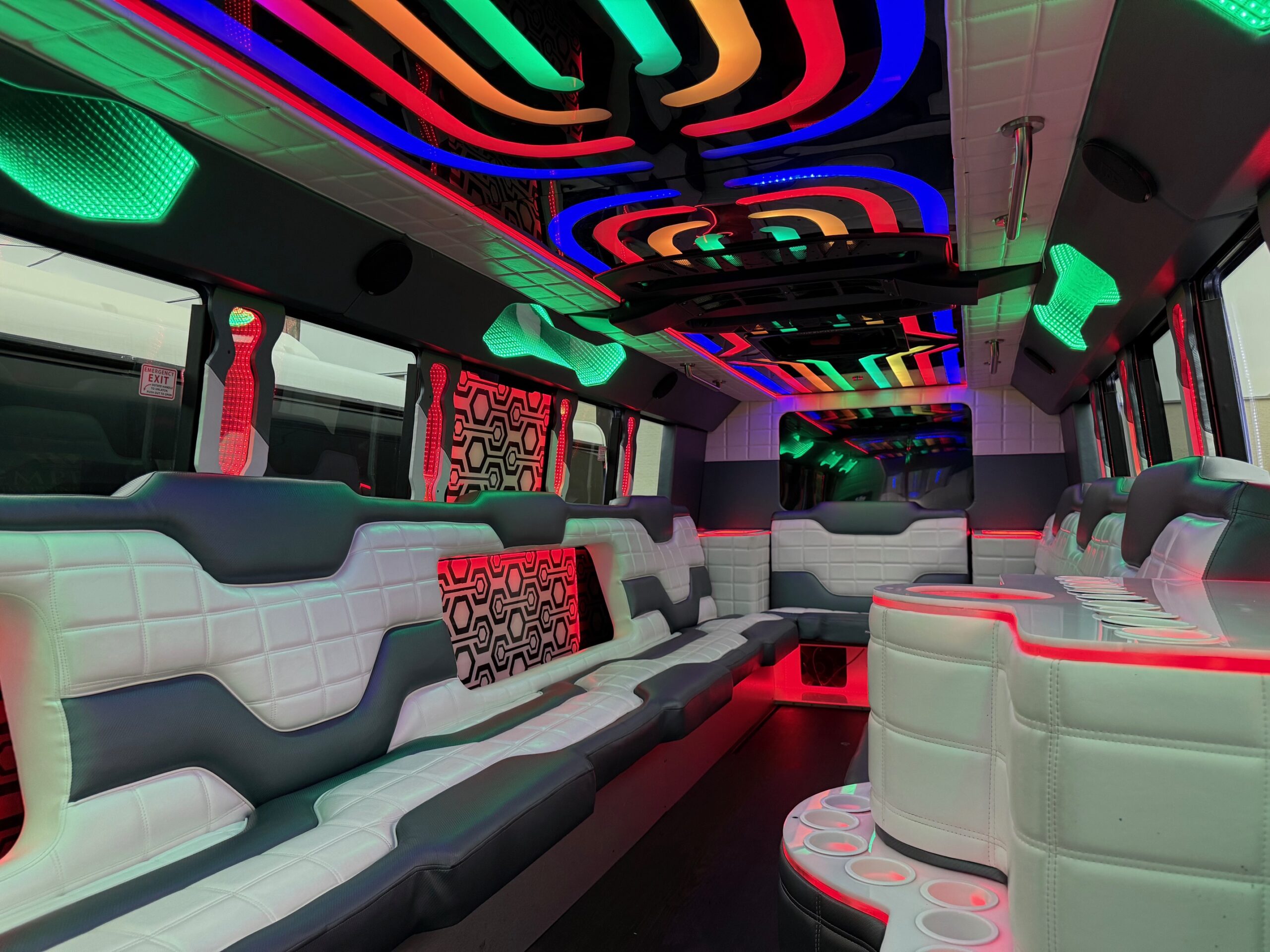 We have pictures of The Illusion on this page, but really, only so much can be captured through photography. If you’d like, call us to schedule a viewing of our entire fleet. You can see the Illusion in addition to all of our party buses so that you find the perfect one for you.