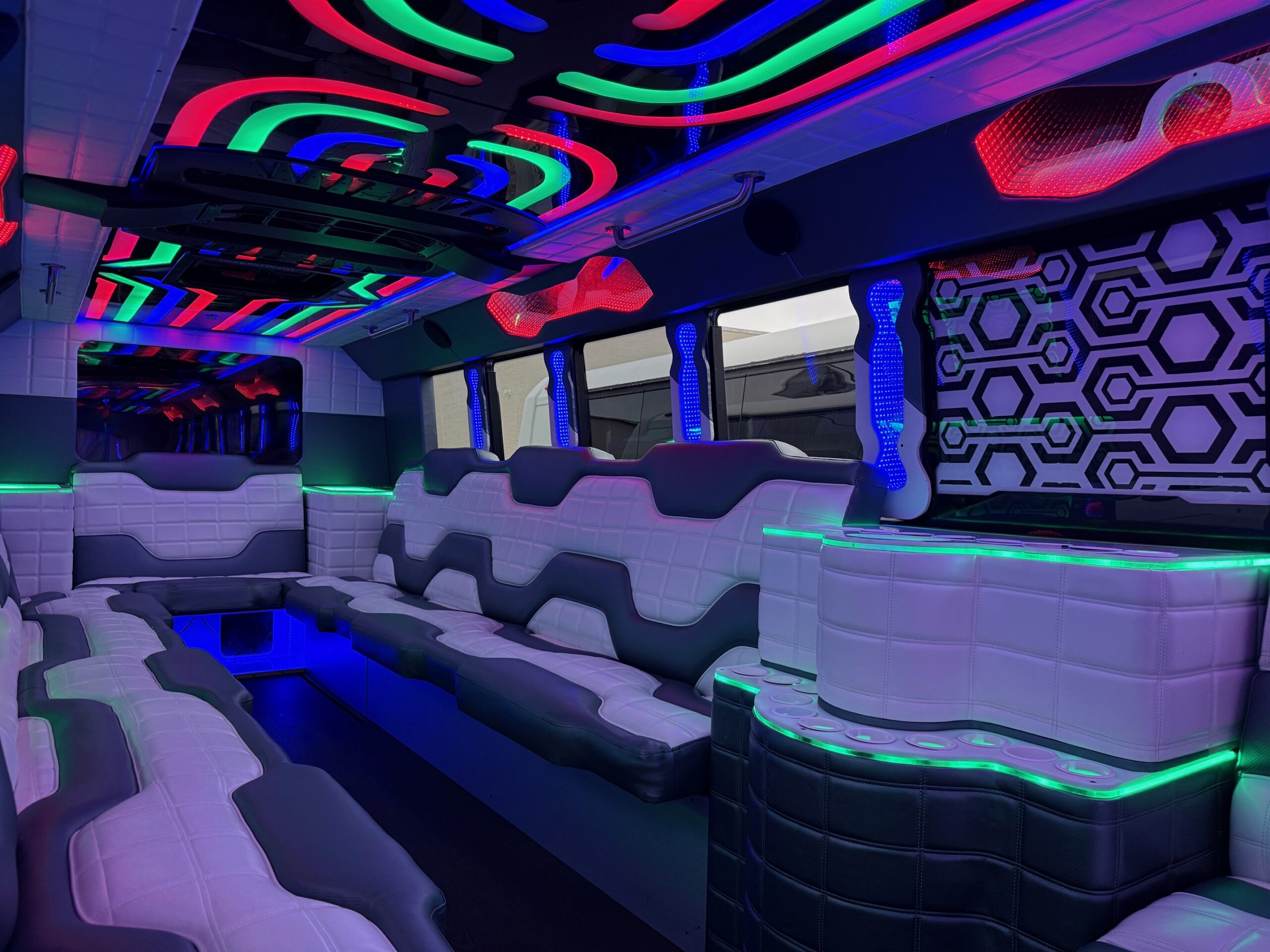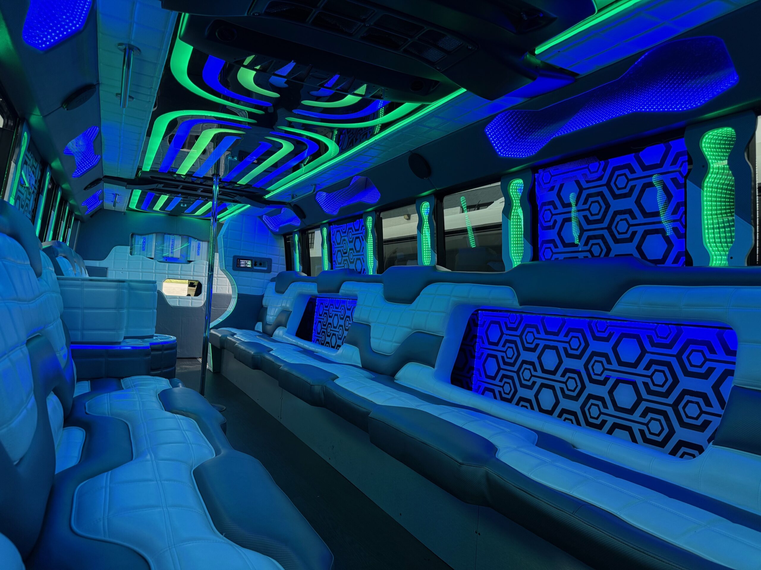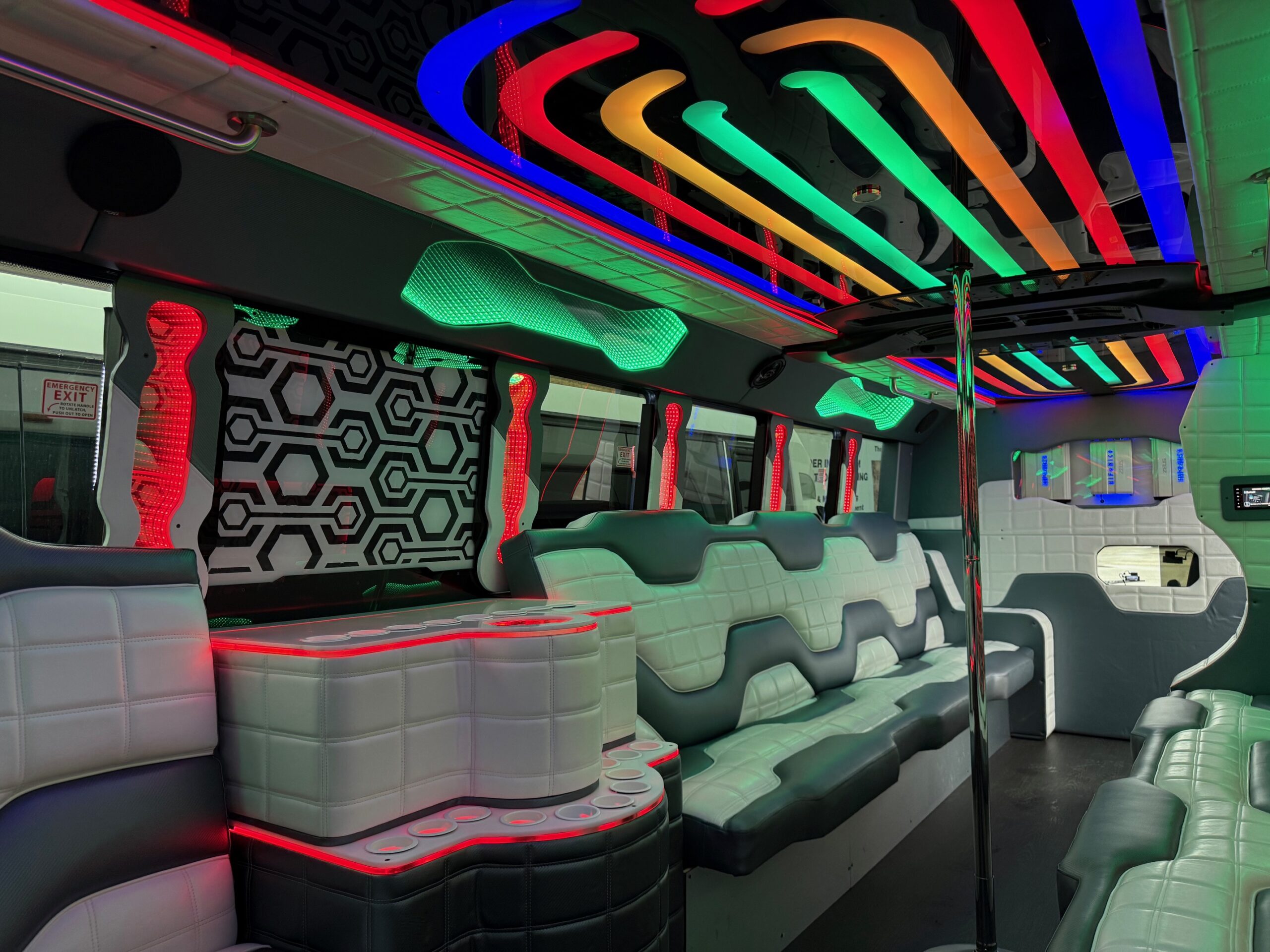 We have pictures of The Illusion on this page, but really, only so much can be captured through photography. If you’d like, call us to schedule a viewing of our entire fleet. You can see the Illusion in addition to all of our party buses so that you find the perfect one for you.